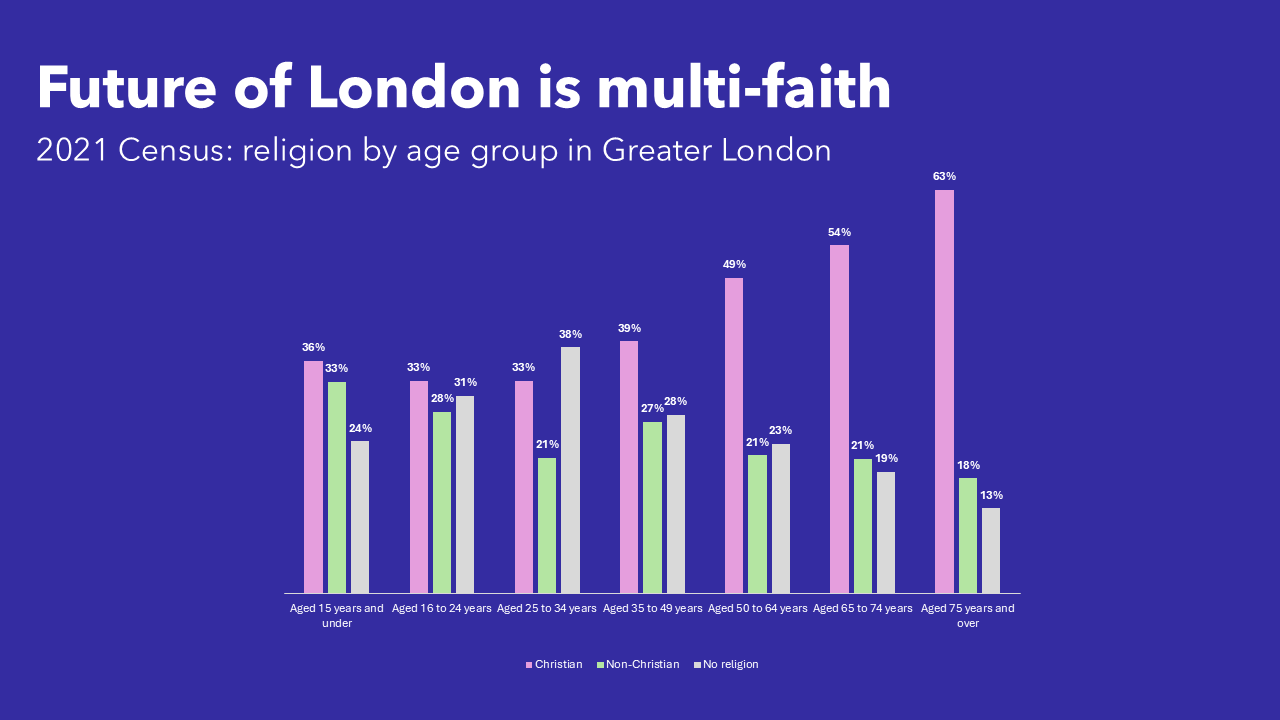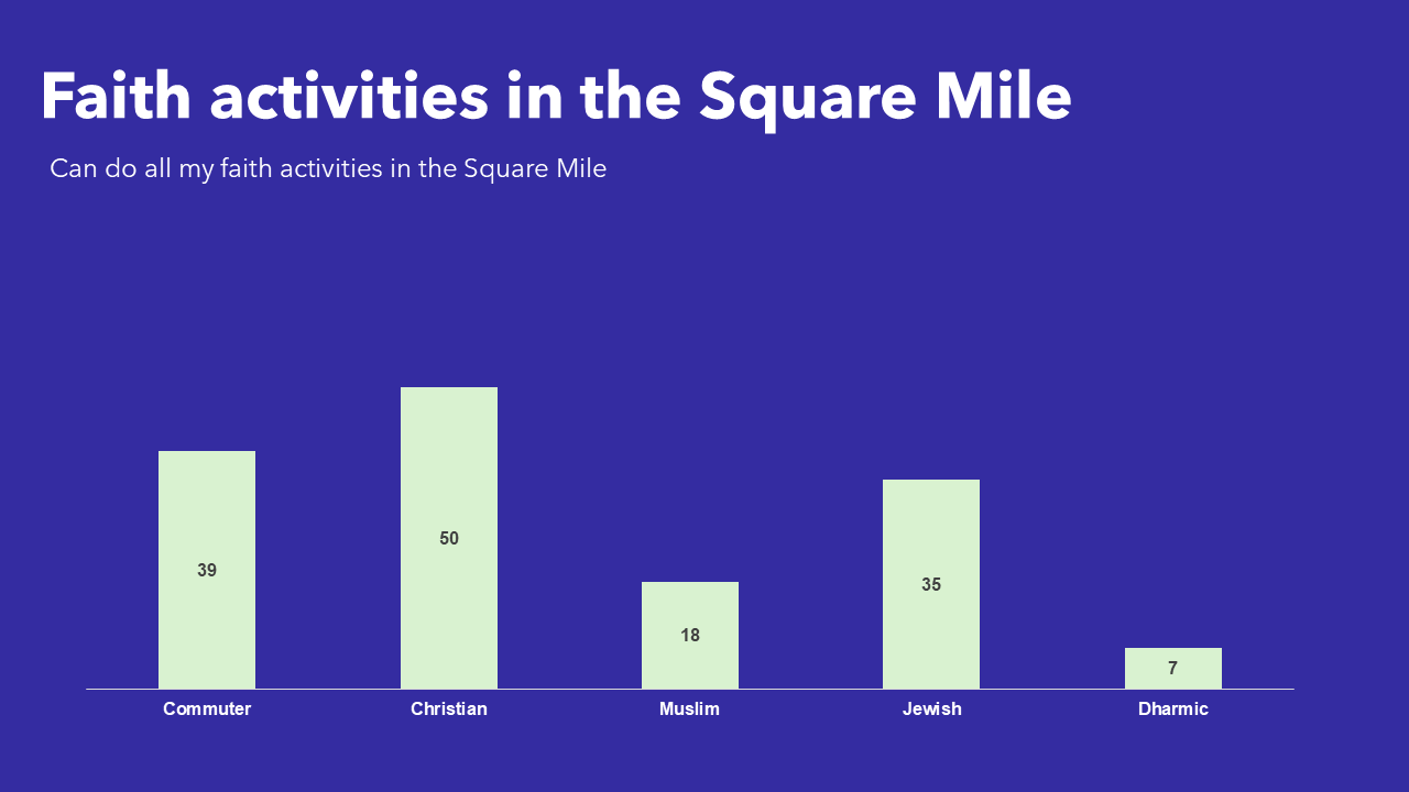 As the historic centre of the capital, the Square Mile is home to 54 churches and the oldest operational synagogue in the UK. However, the extent to which these meet the needs of the modern City community needs to be explored. In particular, how can the Square Mile meet the needs of a wider variety of faiths?
